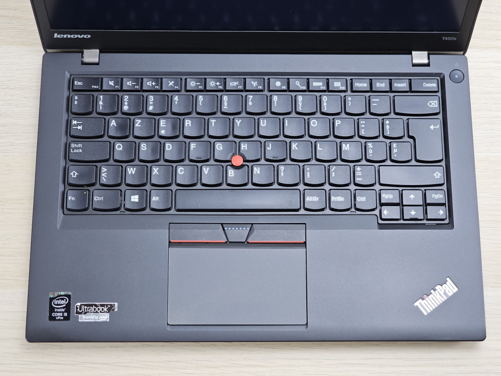 A 14 hüvelykes, Full HD vagy HD+ felbontású kijelző éles, színhű képet biztosít, matt felülete pedig csökkenti a tükröződést, így hosszabb munkanapokon is kényelmes a használata. A T450s könnyű, mindössze kb. 1,5 kg-os súlya és karcsú kialakítása ideálissá teszi utazáshoz, miközben a magnézium- és szénszál-erősítésű ház a MIL-STD 810G katonai szabvány szerinti strapabíróságot garantálja. A legendás ThinkPad billentyűzet ergonomikus, cseppálló kialakítású, és opcionálisan háttérvilágítással is elérhető, így gyenge fényviszonyok között is kényelmesen használható.